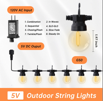 适配器美规5V带8功能按键灯泡数量12个